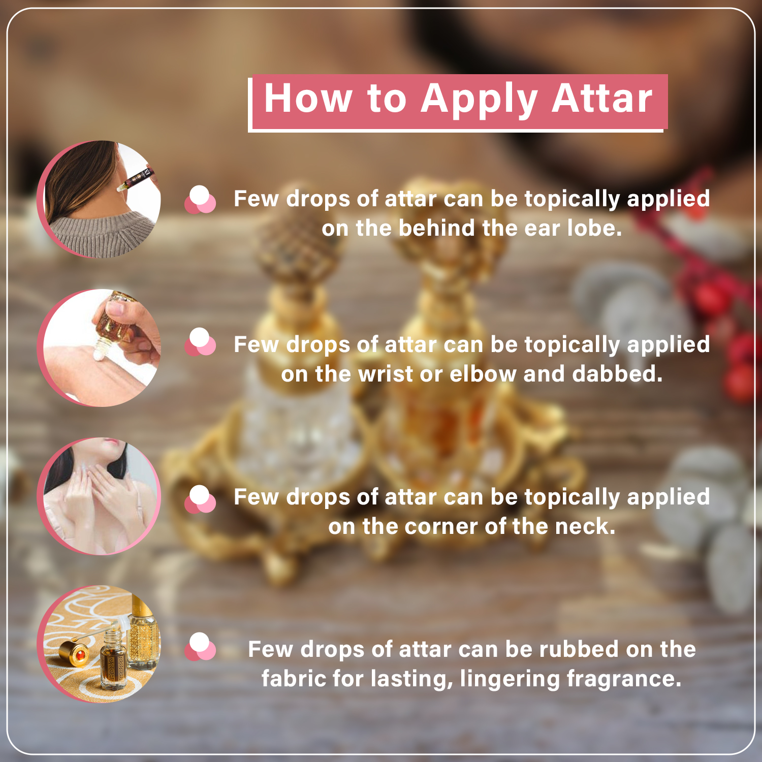 Experience the floral essence of Kashmir Musk. The blend of white musk, jasmine, and tuberose imparts a uniquely breezy fragrance. Let Kashmir Musk attar uplift your senses with moments of pleasure. The aroma of TNK fragrance Kashmiri Musk will mesmerize you, casting a spell of magic.